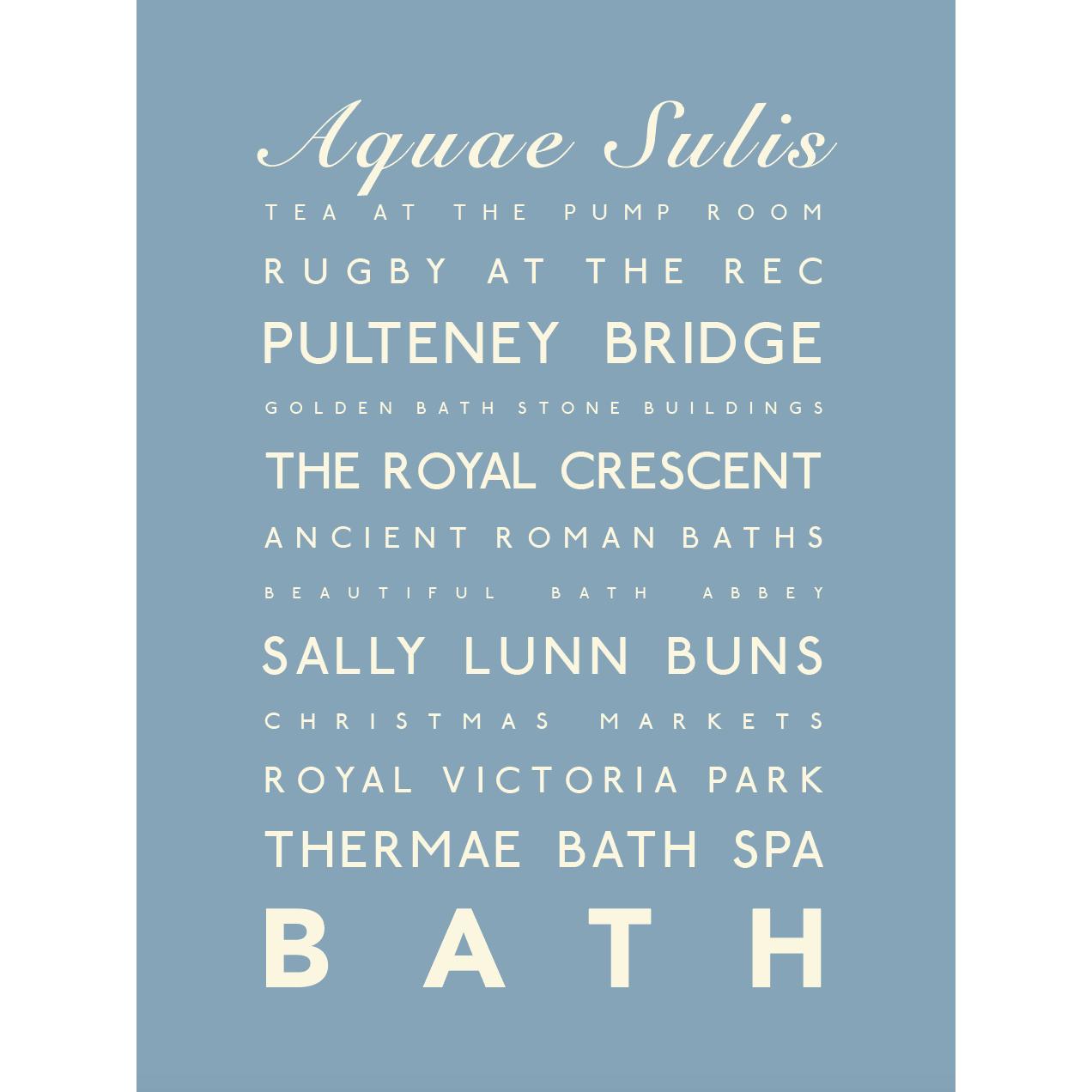 This Bath Typographic Travel Print - Coastal Wall Art is available in three sizes: