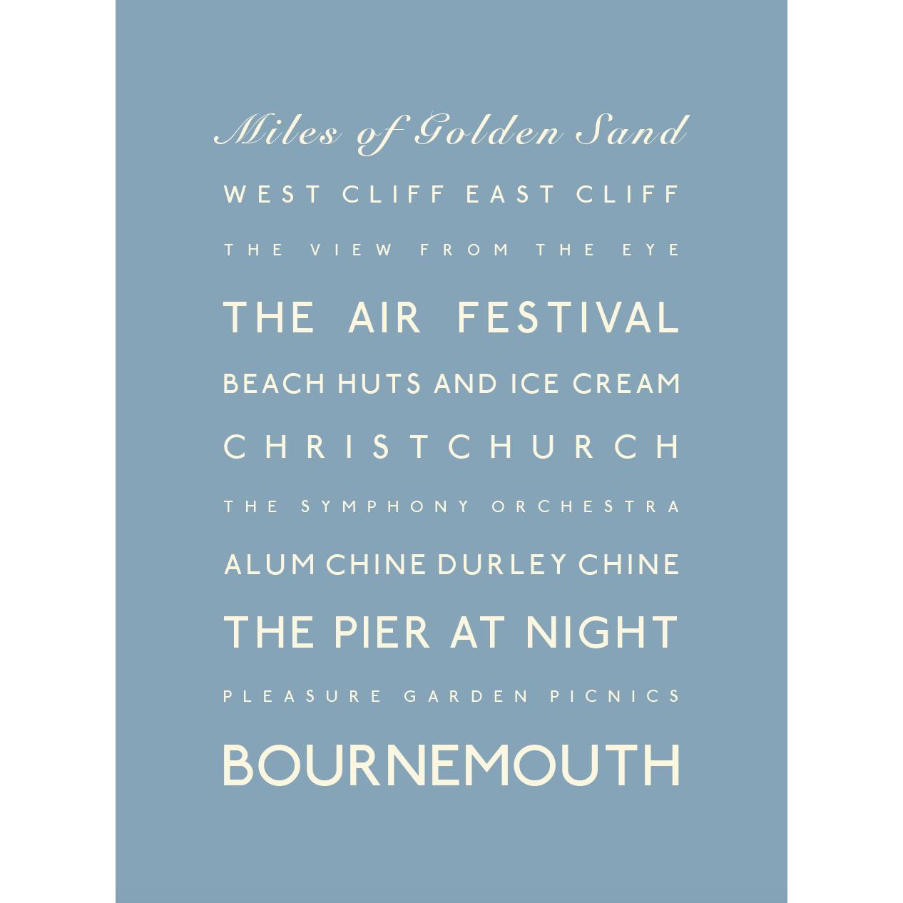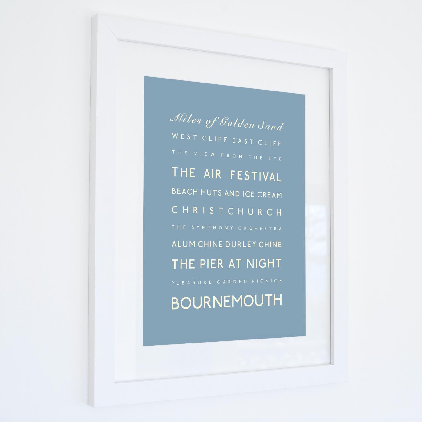 This Bournemouth print comes printed in a seaside blue and is available in three sizes:
