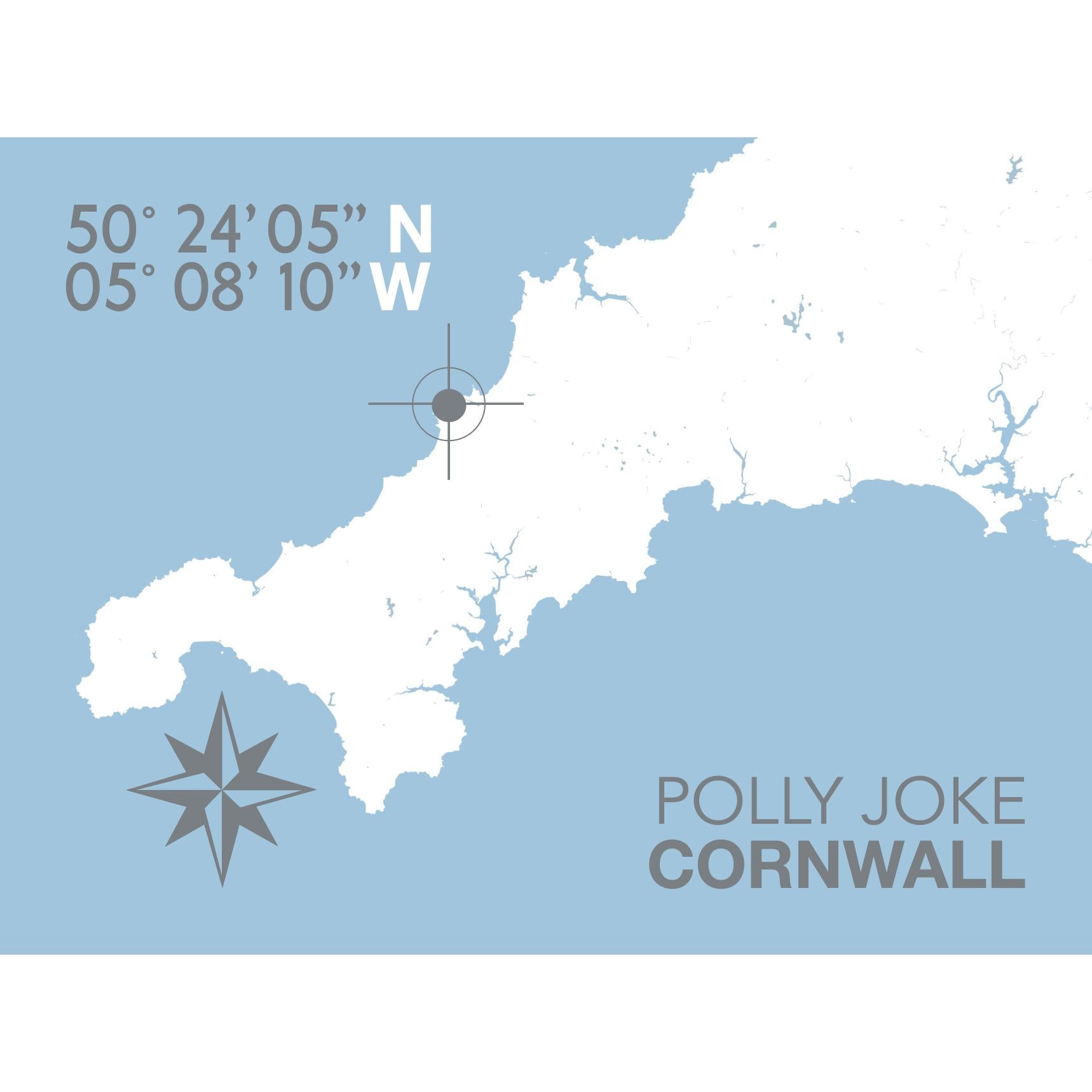 Polly Joke to those who love it, our Porth Joke map print shows the coordinates for Porth Joke and locates it on the north coast of Cornwall.